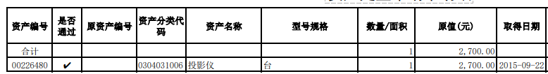 yl7703永利集团报废投影机1台固定资产,该固定资产购置于2015年,原值2700.00元,因使用年限长陈旧损坏,已无法正常使用,拟于近期报废(报废清单见附件)。