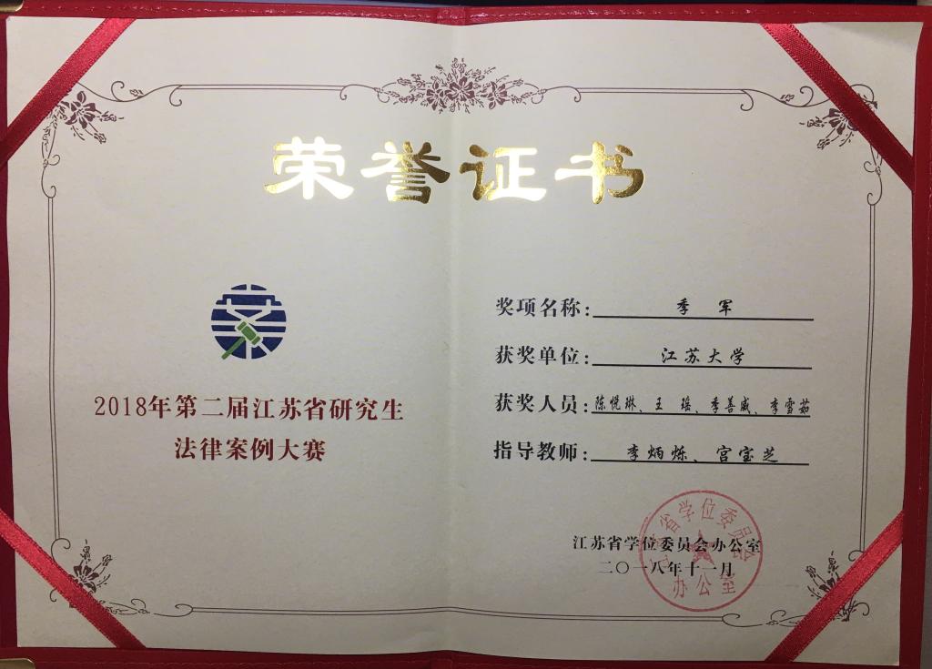yl7703永利集团研究生团队荣获2018年江苏省研究生法律案例大赛季军