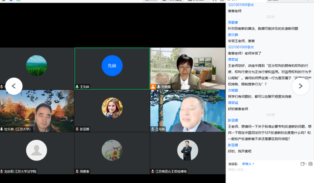 在后续与谈环节中,王先林教授对师生的提问进行了深入浅出的回应,参与讲座学习的老师和同学获益良多。
