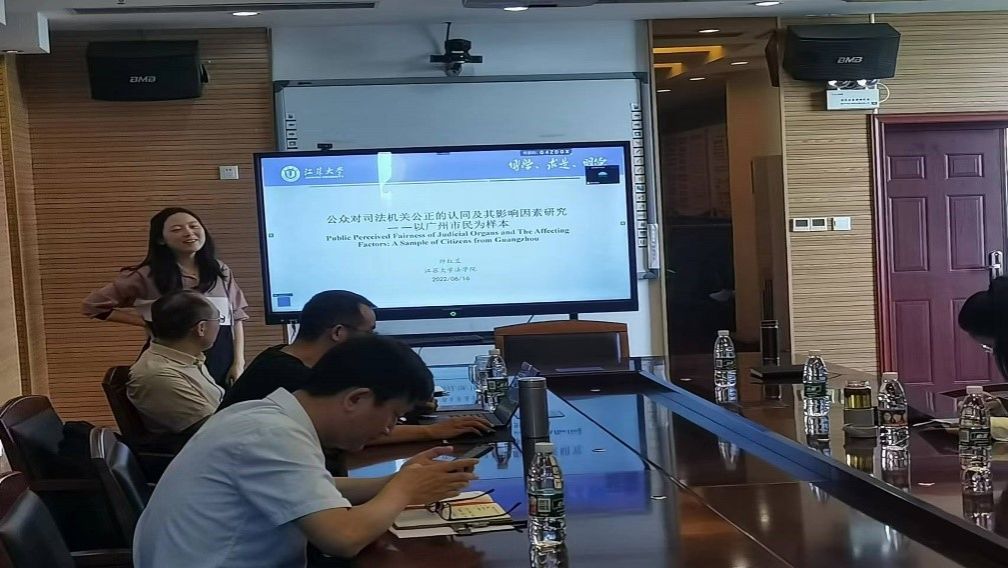 6月16日下午,yl7703永利集团教师学术沙龙第10期在学院会议室举行。本次沙龙由帅红兰老师主讲,主题是“公众对司法机关公正的认同及其影响因素研究”,yl7703永利集团牛玉兵副院长、江雪松、魏小强、吴秋元、申屠晓莉、郑淑珺、孙建国、尚清锋等老师参与研讨,周德军等老师和部分研究生线上参与活动。沙龙由yl7703永利集团院长李炳烁教授主持。