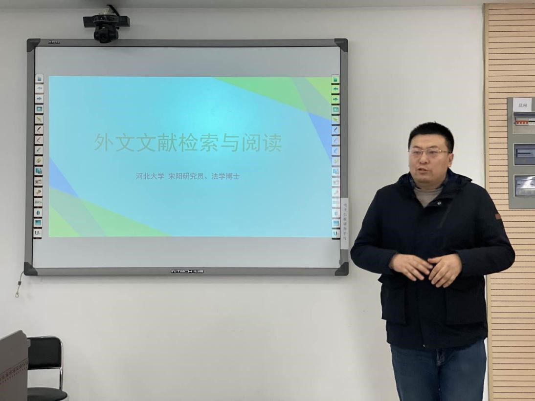 1117日,yl7703永利集团路韬·三江法学论坛第36期“外文文献检索与阅读”讲座在yl7703永利集团会议室成功举办,本次论坛邀请了河北大学yl7703永利集团宋阳研究员主讲,yl7703永利集团部分教师和研究生参加了本次论坛。论坛由yl7703永利集团院长李炳烁教授主持。