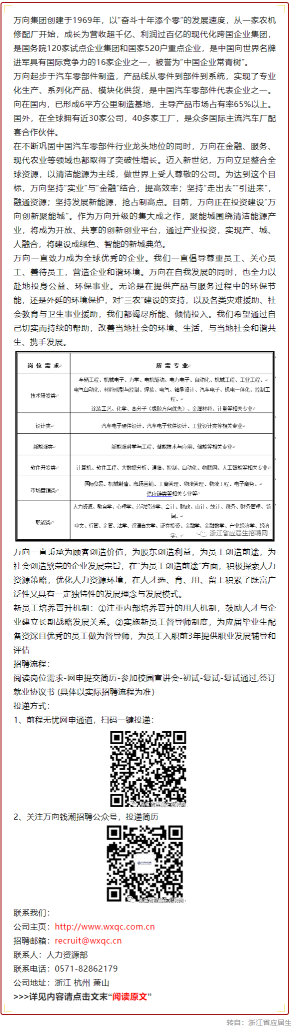 【“涉农行业”春招精选】浙江万向集团公司2022校园招聘