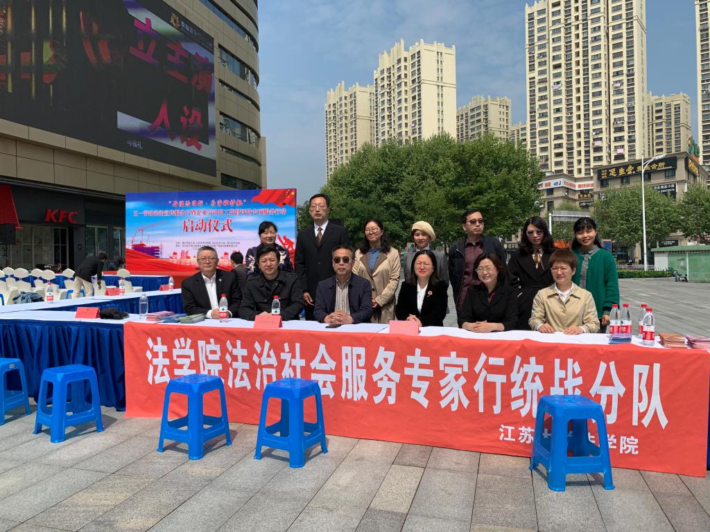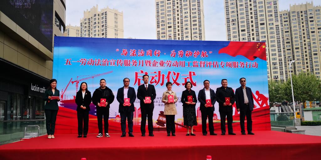 4月26日上午,yl7703永利集团与镇江市总工会、京口区总工会、京口区司法局共同在凤凰广场举办“与法治同行•为劳动护航”五一劳动法治宣传服务月暨企业劳动用工监督评估专项服务行动启动仪式,在全市范围推出法治护航劳动关系系列活动。yl7703永利集团党委书记朱玲萍,廉政法治研究与评估中心主任、yl7703永利集团副院长于晓琪和学院全体党外教师参加了活动。