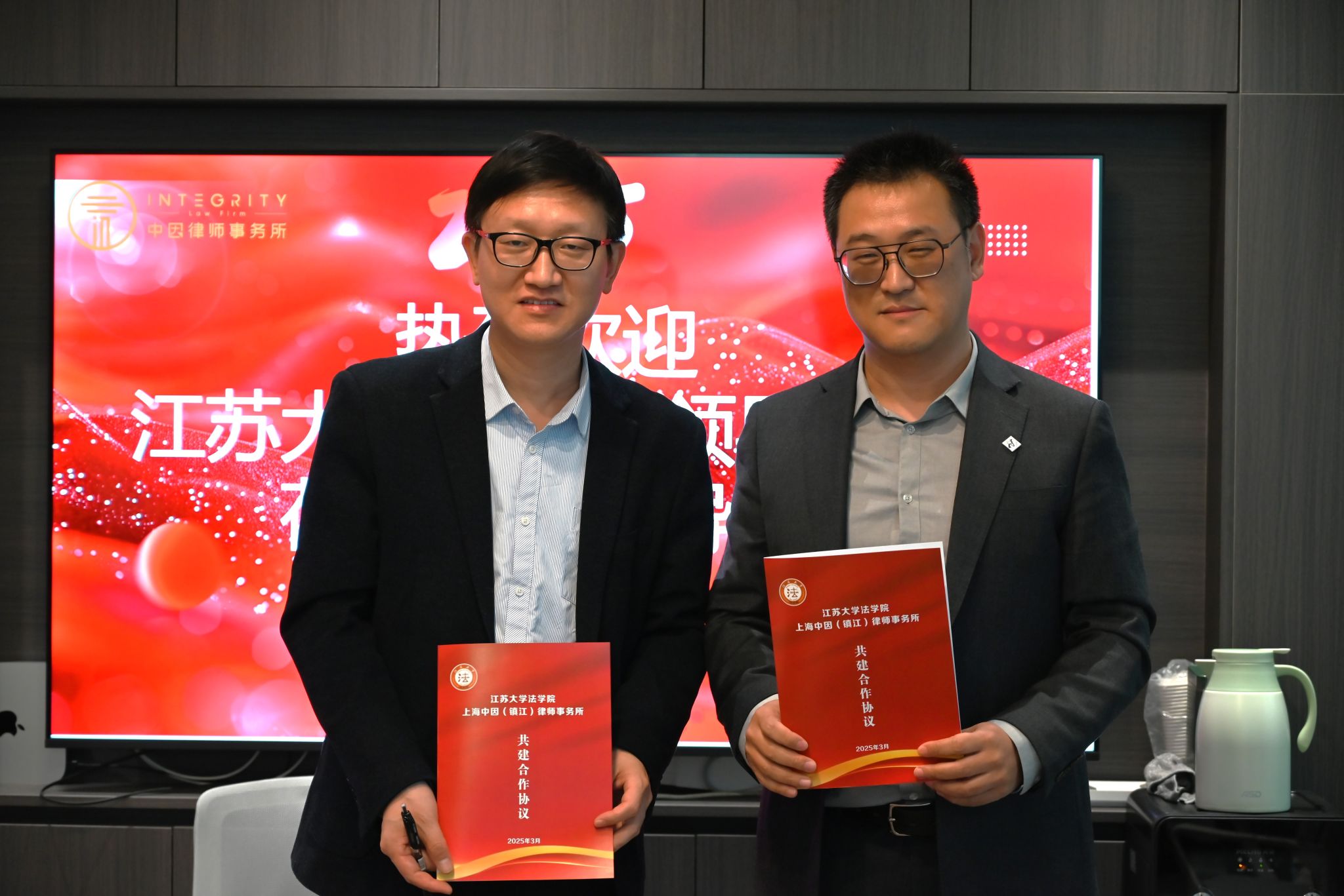 yl7703永利集团与上海中因(镇江)律师事务所签署校地合作共建协议,朱玲萍、李炳烁、钱岭共同为“yl7703永利集团法学实践教学基地”揭牌,钱岭与王一博等4位2025届yl7703永利集团毕业生签订劳动合同。