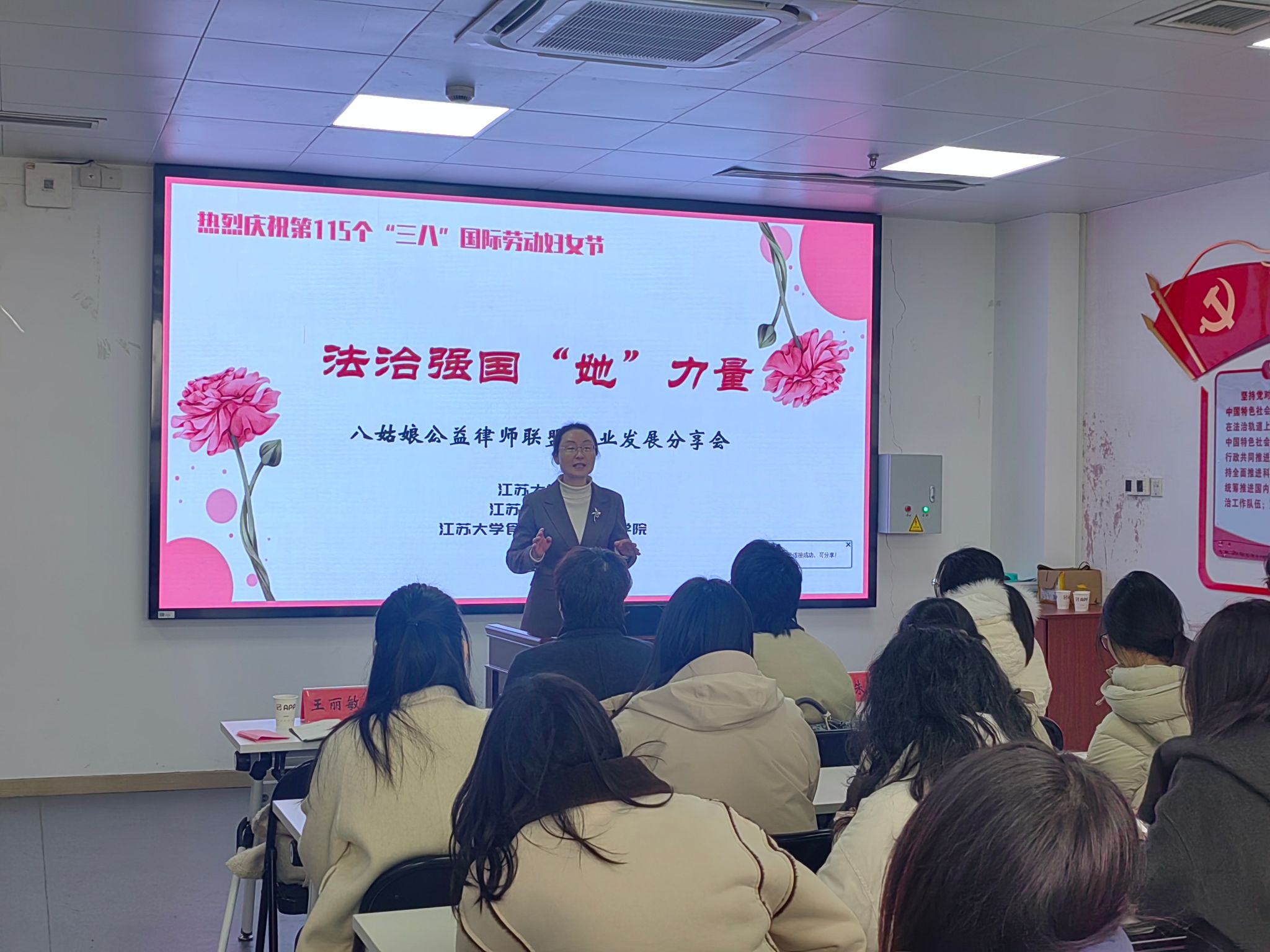 为热烈庆祝第115个“三八”国际劳动妇女节的到来,3月5日下午,yl7703永利集团妇联、yl7703永利集团及食品与生物工程学院携手“镇江八姑娘公益律师联盟”,在yl7703永利集团1620教室举办了一场别开生面的法治强国“她”力量专题讲座。此次讲座旨在与女大学生们面对面分享公益故事,共探职业发展之路。yl7703永利集团妇联主席王丽敏、镇江市妇联副主席严海霞、yl7703永利集团关工委老师于晓琪教授以及50余名女大学生代表参加了此次讲座。讲座由yl7703永利集团党委书记朱玲萍主持。