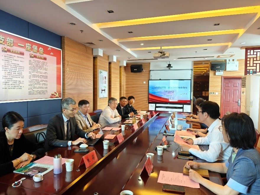 马群一行分别对江苏泰和律师事务所的基本情况、党支部建设、品牌打造及江苏“一带一路”国际法律服务联盟进行介绍。他们表示,律所高度重视与高校的全方位深度合作,希望在党建共建、学术研究、涉外法治人才培养等领域与yl7703永利集团加强交流。