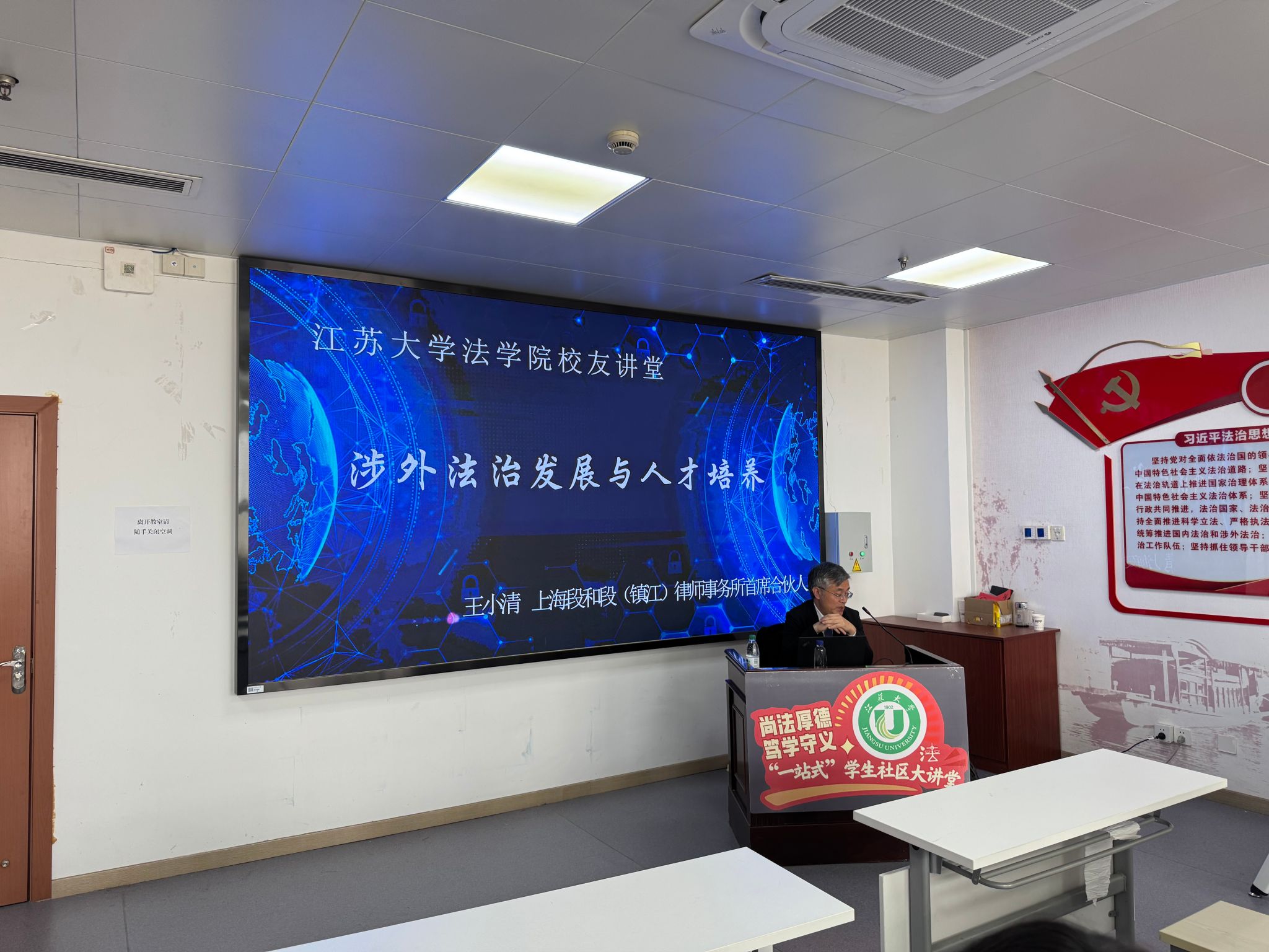 为深入探讨涉外法治建设前沿动态,提升学生国际视野与职业素养,10月26日,yl7703永利集团于玻璃房1620开展“yl7703永利集团‘一站式’学生社区大讲堂”系列活动暨涉外法治发展与人才培养主题校友讲座。本次活动由yl7703永利集团副院长方晓霞主持,江苏省律师协会副会长、镇江市律师协会会长王小清校友主讲,40 余名师生现场参与。