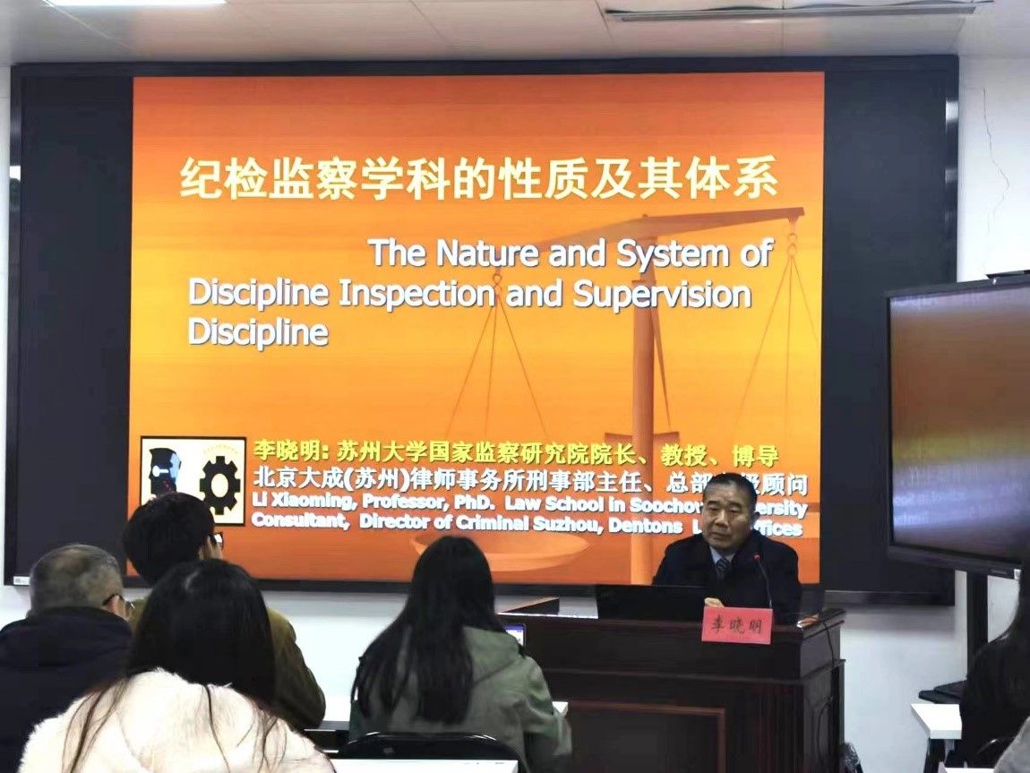 11月25日,苏州大学国家监察研究院院长李晓明教授应邀来我院讲学,讲座主题 “纪检监察学科的性质及其体系”。本次讲座由yl7703永利集团李炳烁院长主持,于晓琪教授、刘立明副教授作为与谈人,60余名师生参加了本次讲座。