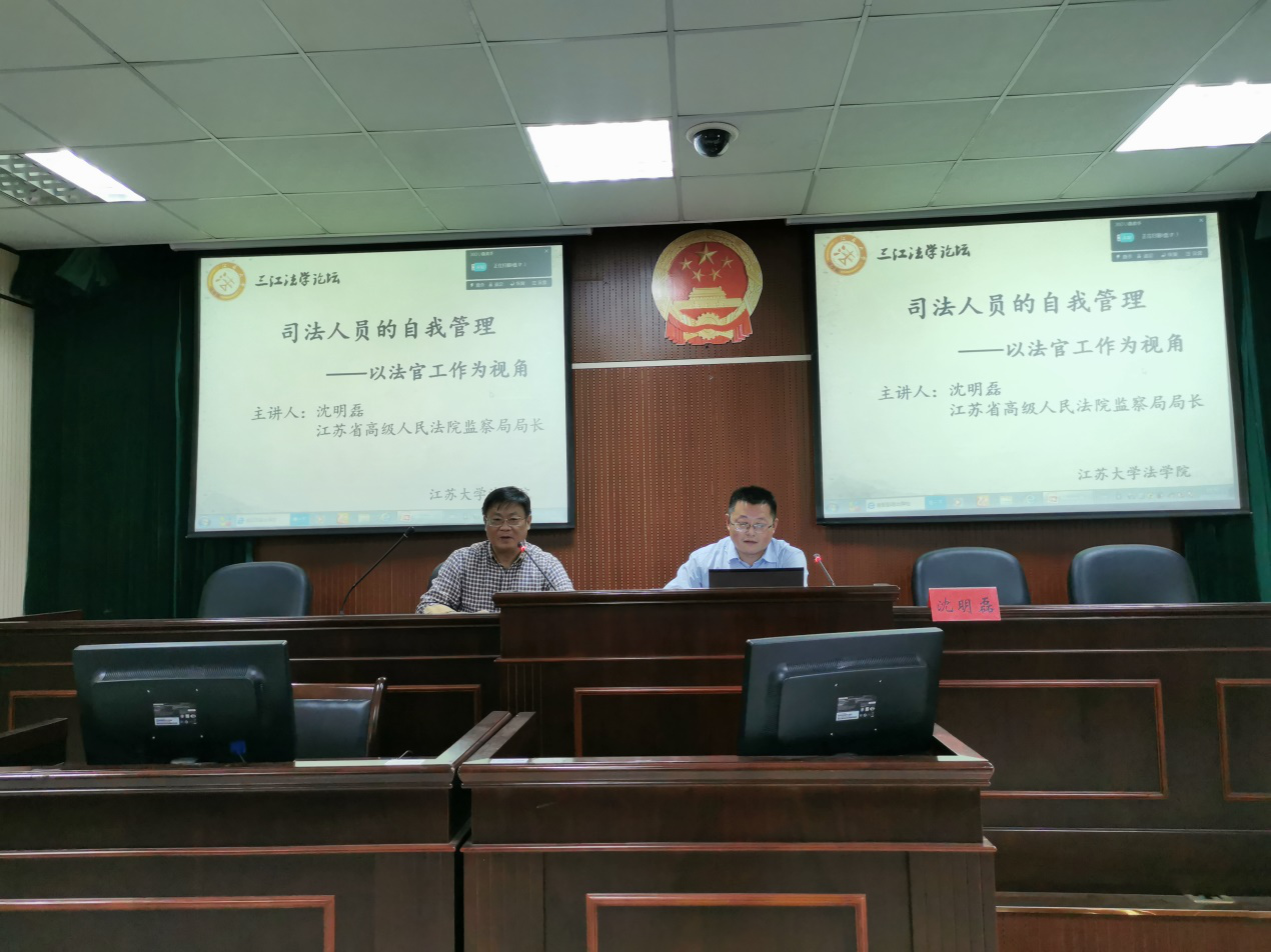10月16日,江苏省高级人民法院监察局局长沈明磊法官做客yl7703永利集团三江法学论坛,以“司法人员的自我管理—以法官工作为视角”为主题展开学术讲座。本次讲座由yl7703永利集团院长刘同君教授主持,yl7703永利集团部分师生以及镇江市丹徒区法院部分法官参加。