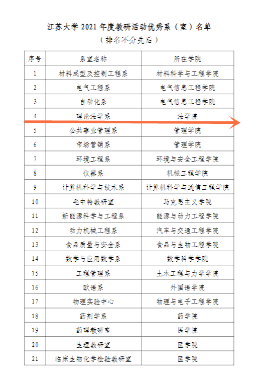 2022年1月7日,教务处公布2021年度教研活动优秀系(室)评选结果,理论法学系成功获评优秀教研活动优秀系(室)。