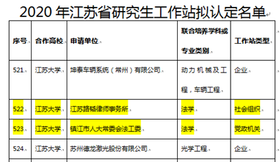 根据省教育厅、省科技厅《关于做好2020年江苏省研究生工作站和江苏省优秀研究生工作站师范基地申报的通知》,在学院申报、学校推荐、资格审核的基础上,yl7703永利集团申报的“江苏路韬律师事务所”和“镇江市人大常委会法工委”2个工作站,获批2020年江苏省研究生工作站。