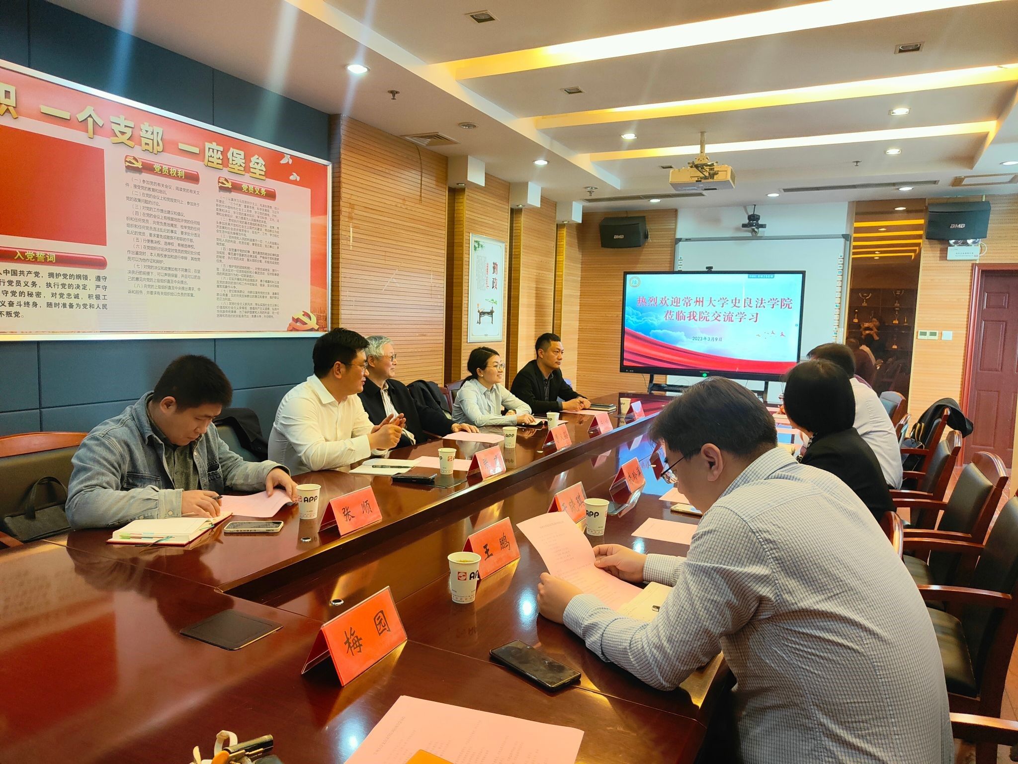 On March 9, Cao Yisun, Honorary Dean of Changzhou University Shiliang Law School and Professor of China University of Political Science and Law, Chen Ting, Party Secretary of Changzhou University Shiliang Law School, Zhang Jian, Dean of Changzhou University, Wang Lujia, Deputy Secretary of Party Committee, Zhang Shun, Assistant Dean came to our law school for research and exchange. Liu Tongjun, Honorary Dean of the Law School and Executive Dean of the College of Discipline Inspection and Supervision, Zhu Lingping, Secretary of the Party Committee of the Law School, Li Bingshuo, Dean, Yu Xiaoqi and Niu Yubing, Vice Deans, and Wang Peng, Deputy Secretary of the Party Committee, warmly received the delegation of Shiliang Law School.